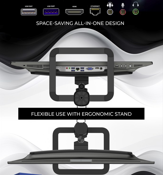 Designed with a sleek and sophisticated aesthetic, the Aidata ARIS AIO PC adds a touch of elegance to your desk setup. The compact black finish minimizes clutter while delivering space efficiency without compromising power. Its all-in-one structure eliminates the need for cumbersome cables, ensuring your workspace stays tidy and professional—an essential attribute for modern offices.